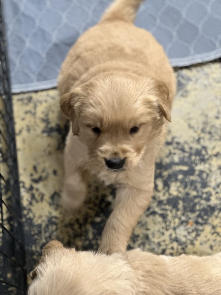 Daphne Sky aka Daphne Taffy, Daphne duck is an English cream Golden. She is loving, loyal, sweet and is very very eager to please. She has fit in extremely well all while becoming instant best friends with all of the other dogs. She has yet to sleep anywhere other than next to our bed. Daphne enjoys being active but also enjoys snuggling on the couch or where ever you are. Daphne is extremely eager to please and is a quick learner. Her favorite thing to do is to dress up with sweaters.
